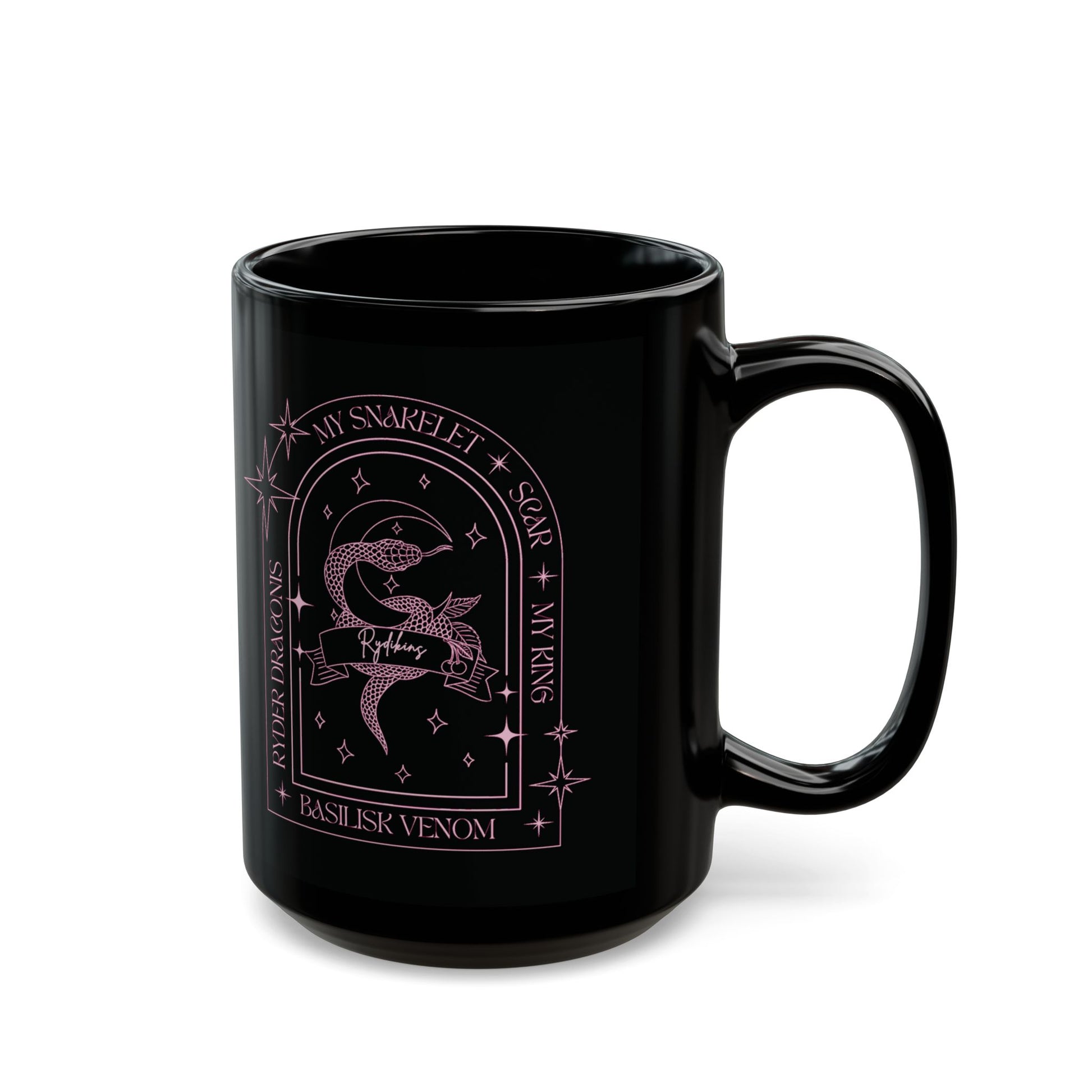 This Rydikins mug is perfect for fans of the ruthless boys of the zodiac series and Ryder draconic. The glossy black ceramic mug features vibrant colors and is available in two sizes. It is microwave and dishwasher safe, making it convenient for daily use.